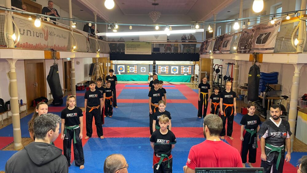 Am Prüfungstag stellten sich insgesamt rund 60 Prüflinge, aufgeteilt auf drei Prüfungsdurchgänge, den Anforderungen der Gürtelprüfungen. Den Auftakt machten am Vormittag 25 Kinder im Pointfighting, gefolgt von den höher graduierten Junioren und Erwachsenen im Pointfighting mit etwa 20 Teilnehmerinnen und Teilnehmern. Am Nachmittag traten schließlich rund 20 Jugendliche und Erwachsene im Leichtkontakt zur Prüfung an.